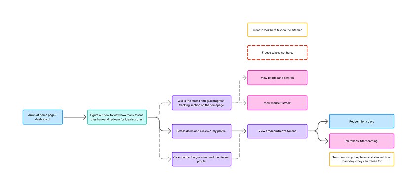 5 of 5 testers had difficulty finding where to redeem their tokens from the home page to freeze their streak.