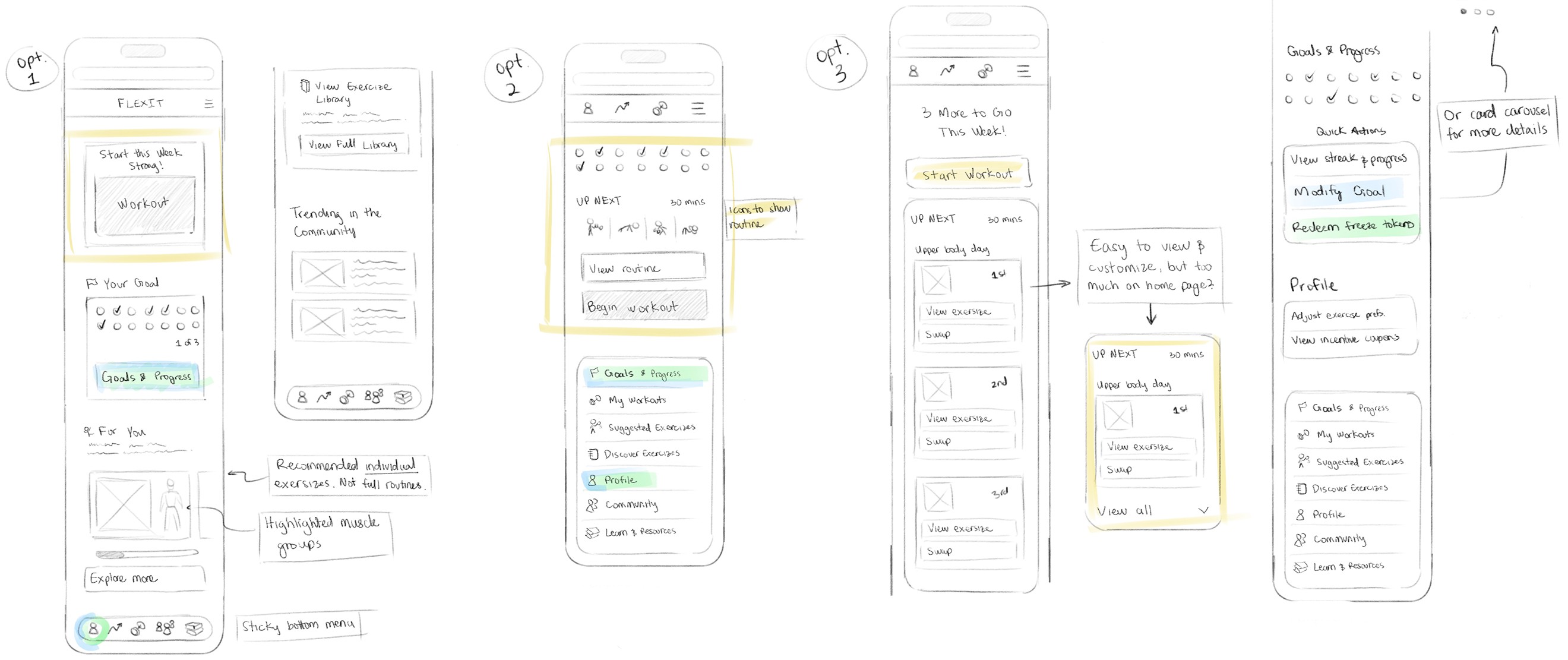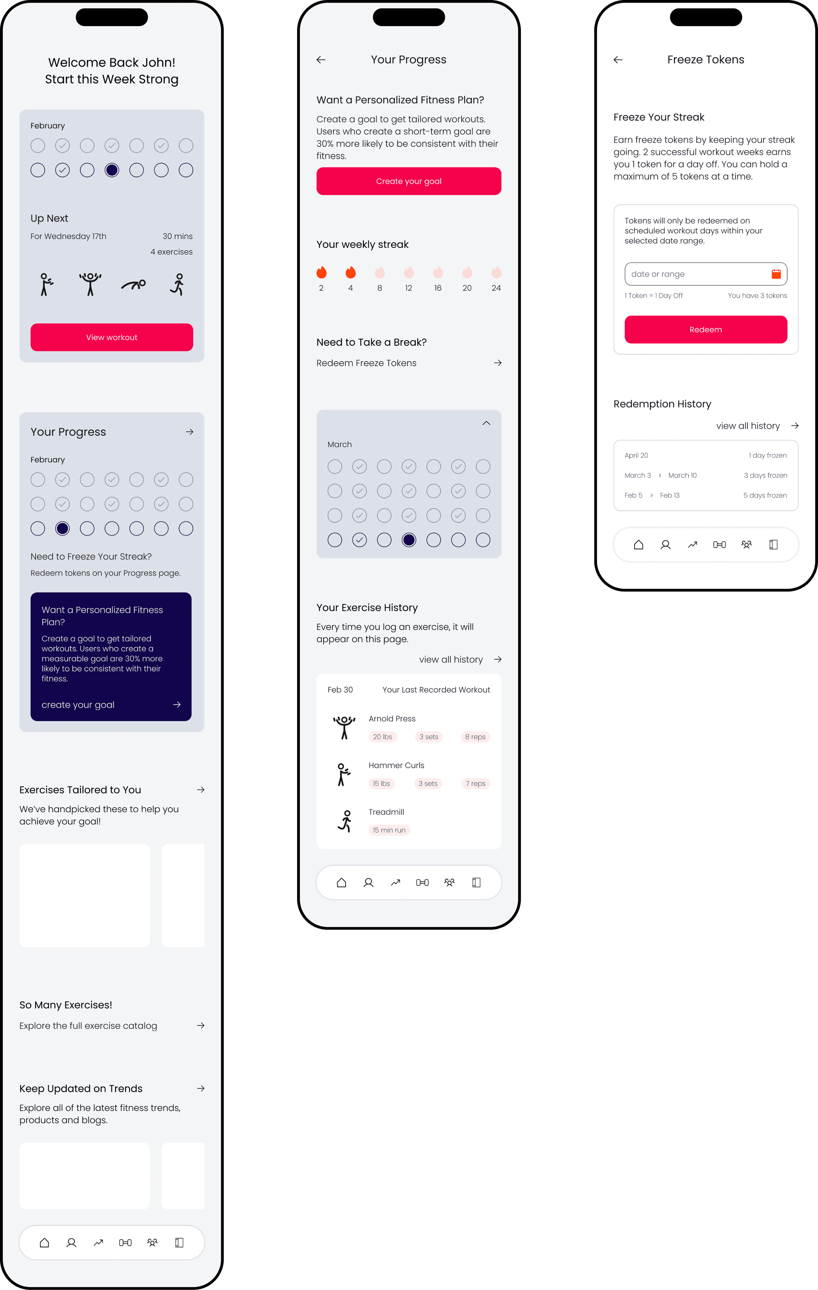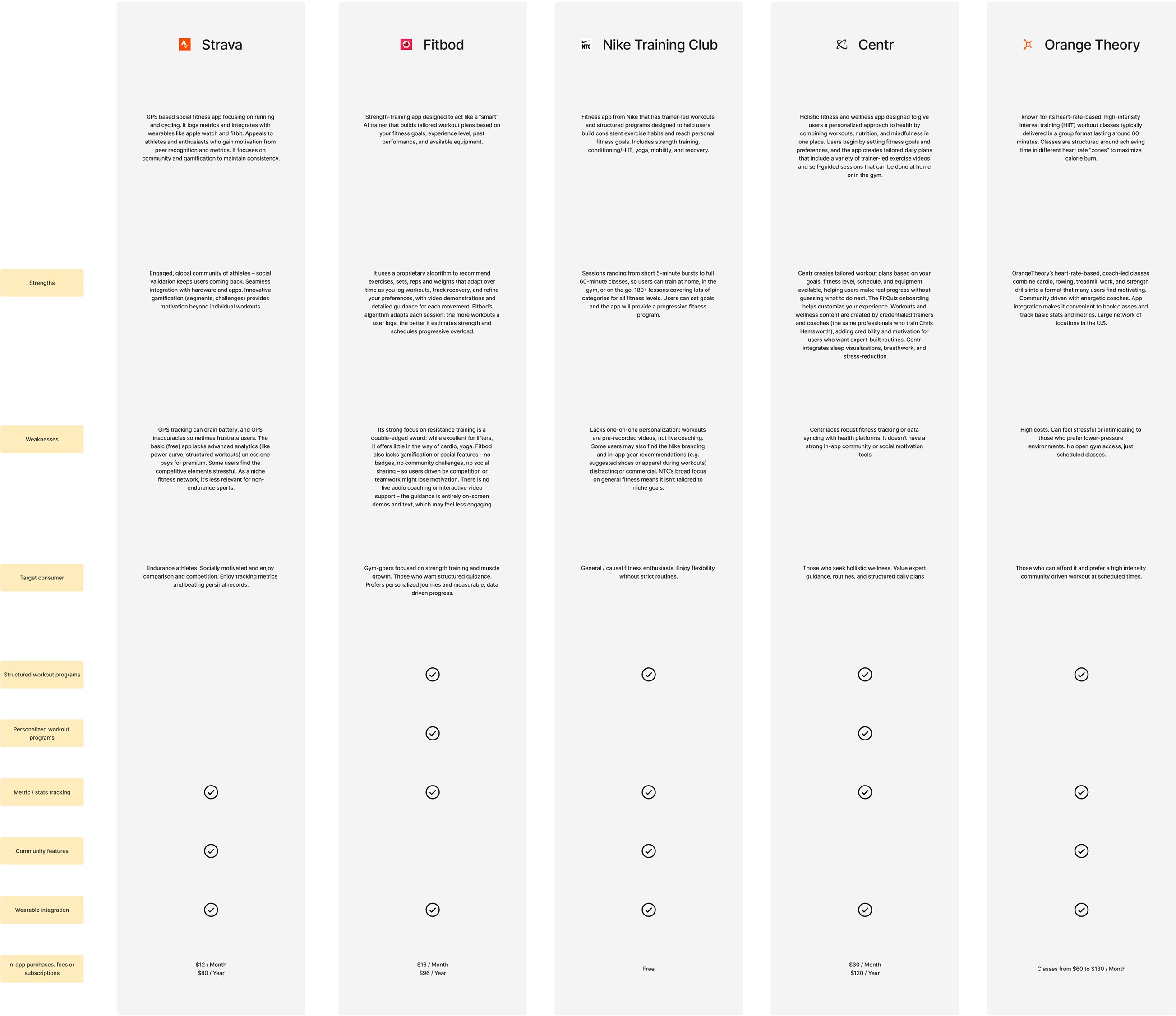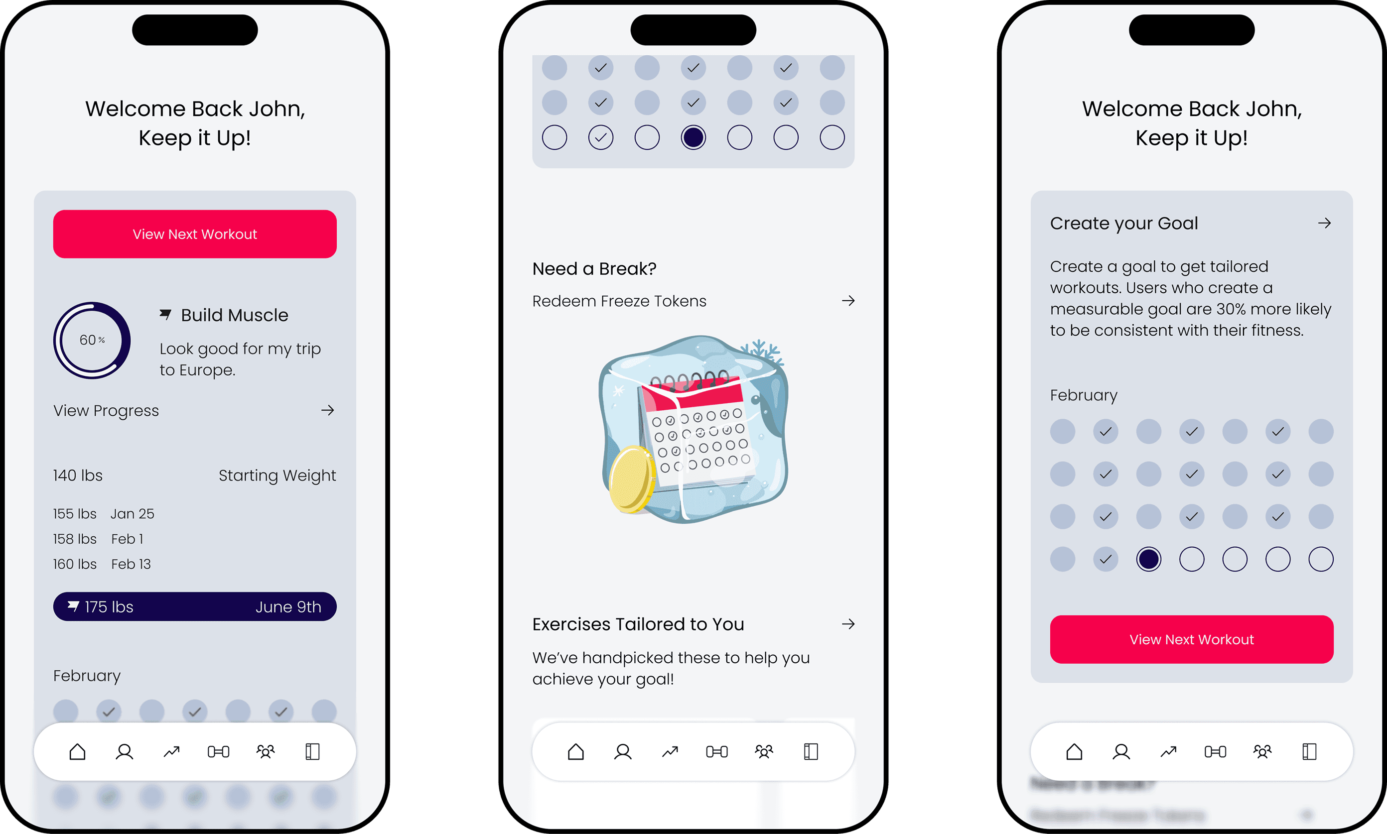 Focusing on short-term goal setting creates a stronger sense of accountability for beginners in fitness. Combined with features like freeze tokens, short post-break exercises, and swappable workouts, the platform is more likely to keep our persona engaged than competing products.